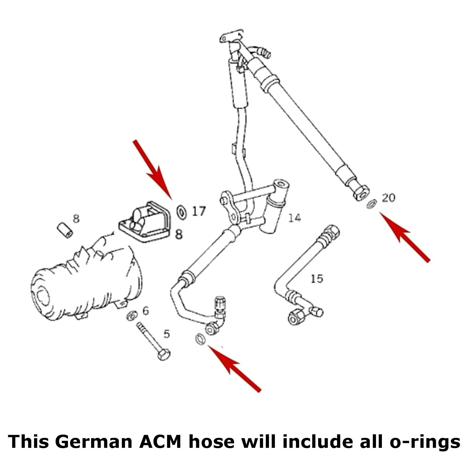 - This hose is made in Germany by ACM an OEM supplier to Mercedes-Benz for A/C parts.