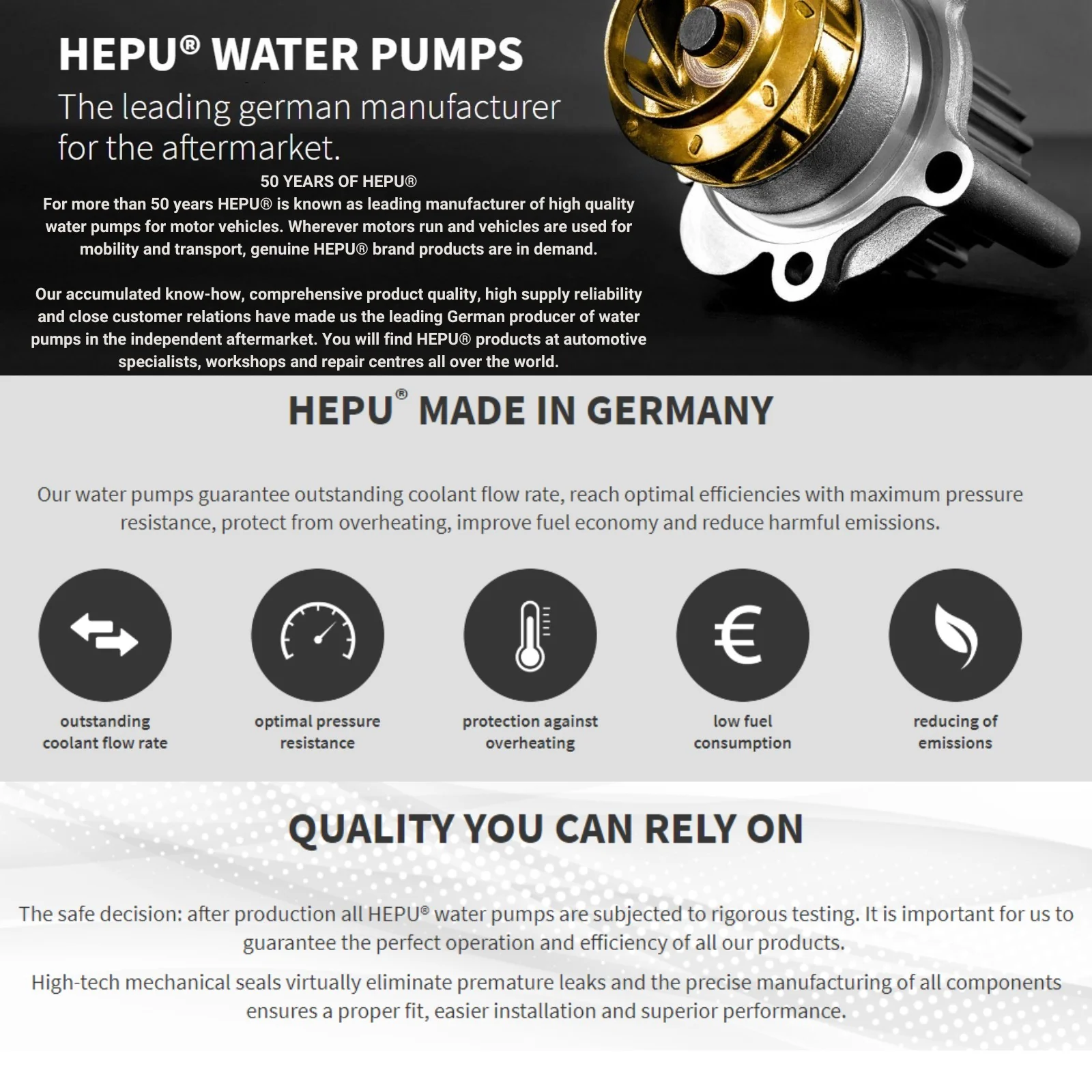- This is a premium Hepu, German made, water pump with gasket.