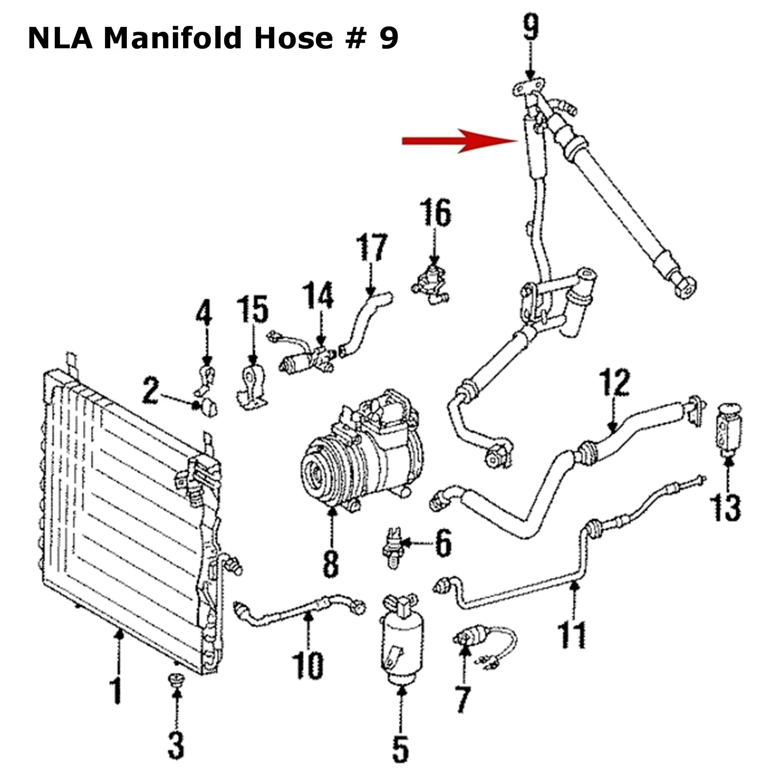 - This is the suction hose, also referred to as the Manifold Hose and connects to the compressor and 2 other hoses.