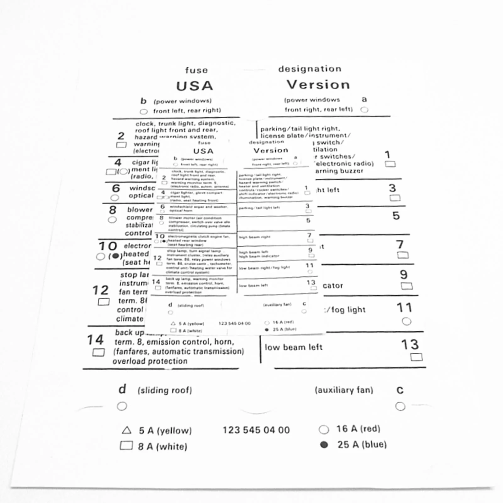 - The original NLA yellow fuse card 123 545 04 00 is also available here until supplies are exhausted.